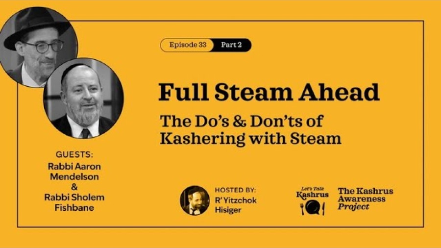 Let’s listen in to a round table discussion on the Do’s & Dont’s of Kashering with steam, between R’ Aaron Mendelson of Kosher Services, R’ Sholem Fishbane, Director of Kashrus for the Chicago Rabbinical Council and Executive Director of AKO, and R’ Yitzchok Hisiger.