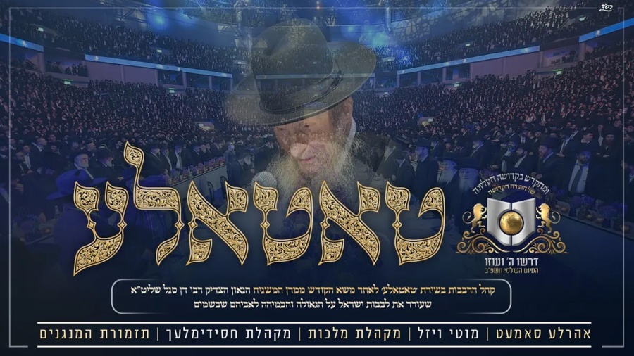 אהרלע סאמעט ומוטי ויזל יחד עם תזמורת מורחבת של "המנגנים" בניצוחו של מוישי רוט, מקהלת "מלכות" בניצוחו של פנחס ביכלר ומקהלת הילדים "חסידמלעך", בביצוע מרגש של הניגון המיוחד שהלחין מרן המשגיח הגאון הצדיק רבי דן סגל שליט"א יחד עם קהל הרבבות בארנה ירושלים, בתחינה לבורא עולם שישוב ברחמים לירושלים וגאולת ישראל.