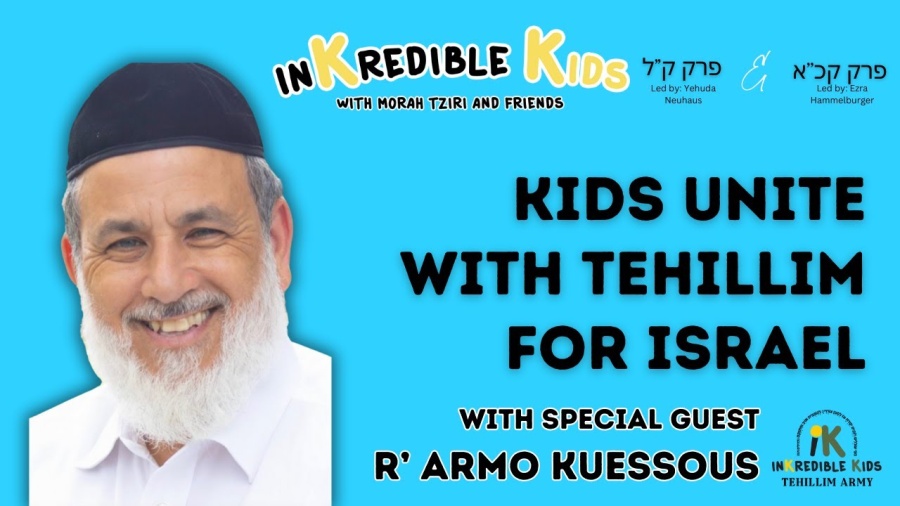 Join R' Armo Kuessous and kids from around the globe with unity for Am Yisrael. Kids can say Perek Kuf Chaf Aleph and Perek Kuf Lamed with the InKredible Ezra and the InKredible Yehuda!