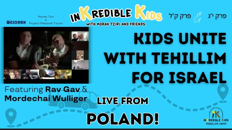 Join Rav Gav and Mordechai Wulliger and kids from around the globe with unity and song. Kids can say Perek Yud Gimmel and Perek Kuf Lamed along with the InKredible Dovi and the InKredible Ari!