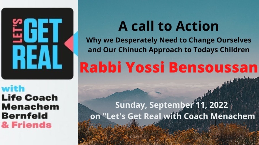 Rabbi Yossi Bensoussan on Let's Get Real with Coach Menachem, Sunday September 11 Class # 116, Why we desperately need to change Ourselves and Our Chinuch Approach to Today's children.