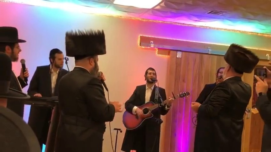 Michoel schnitzler rocking at a wedding in Lakewood with dovi tesler!