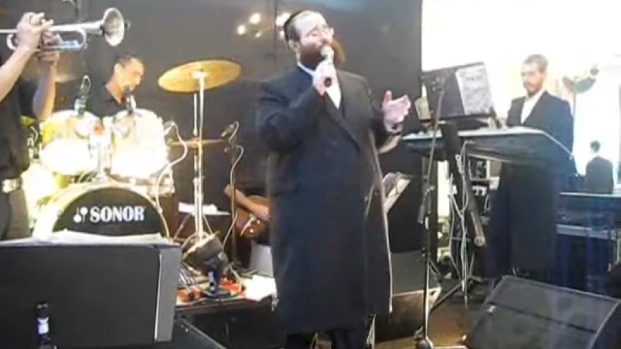Shloime Taussig singing at a wedding in Israel with Ruvi Bannet