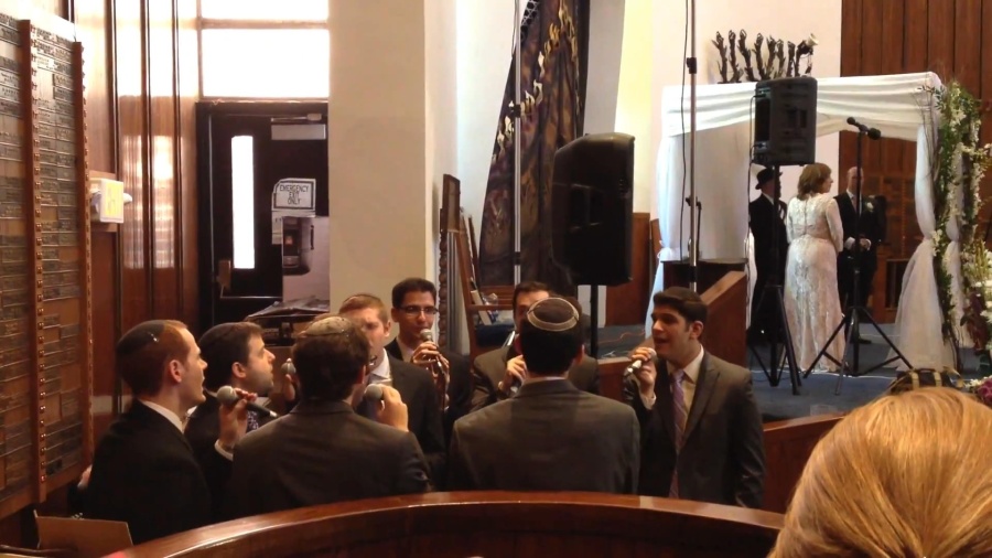 The Maccabeats singing Mi Adir at the wedding of Meir and Jordana Shapiro. To the tune of Kah Ribon, originally by Ari Goldwag